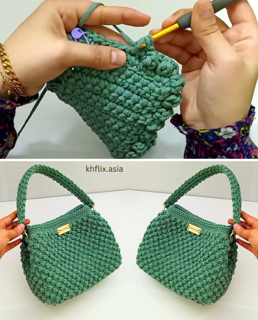 - Weave in all ends securely using a tapestry needle. Ensure the tails on the inside of the bag are woven through the dense body fabric.