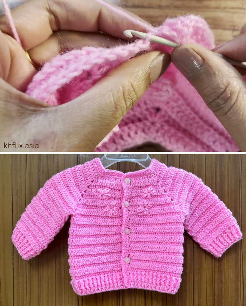 ✨ How to Crochet a Baby Cardigan (Top-Down Raglan Style)