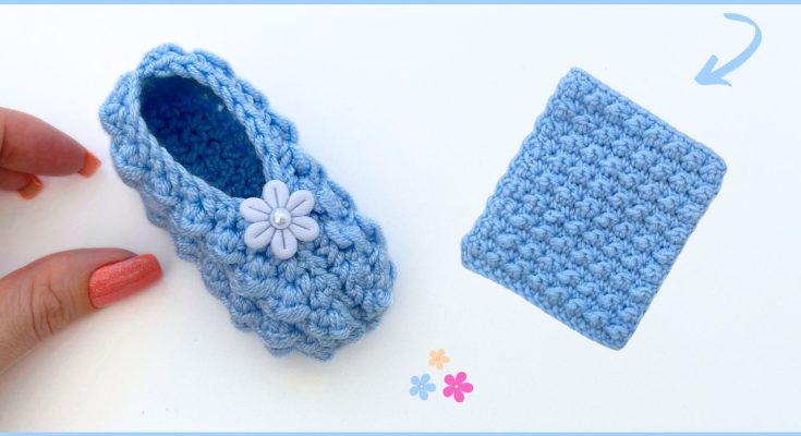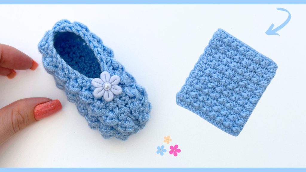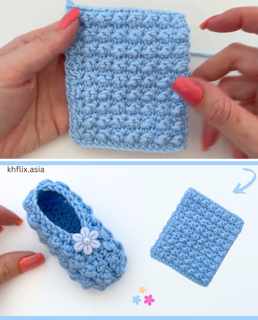 - Repeat: The body of the bootie is formed by repeating Row 2 (Texture) and Row 3 (SC) until the entire piece is long enough to wrap around the baby’s ankle and foot circumference.