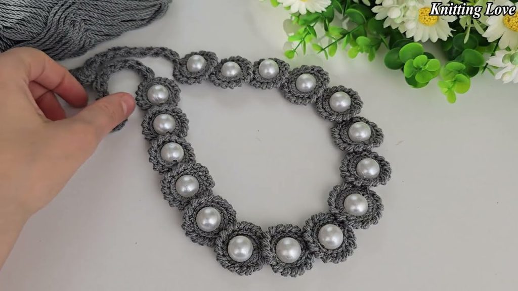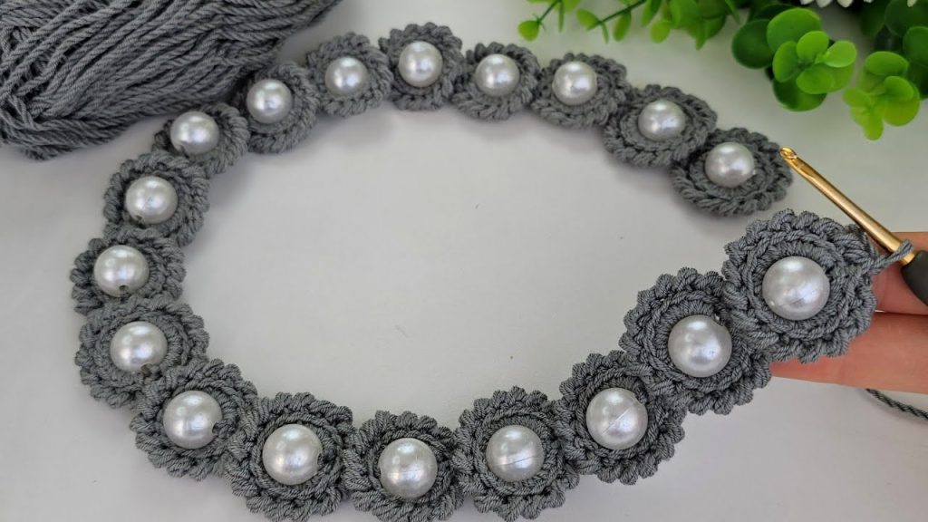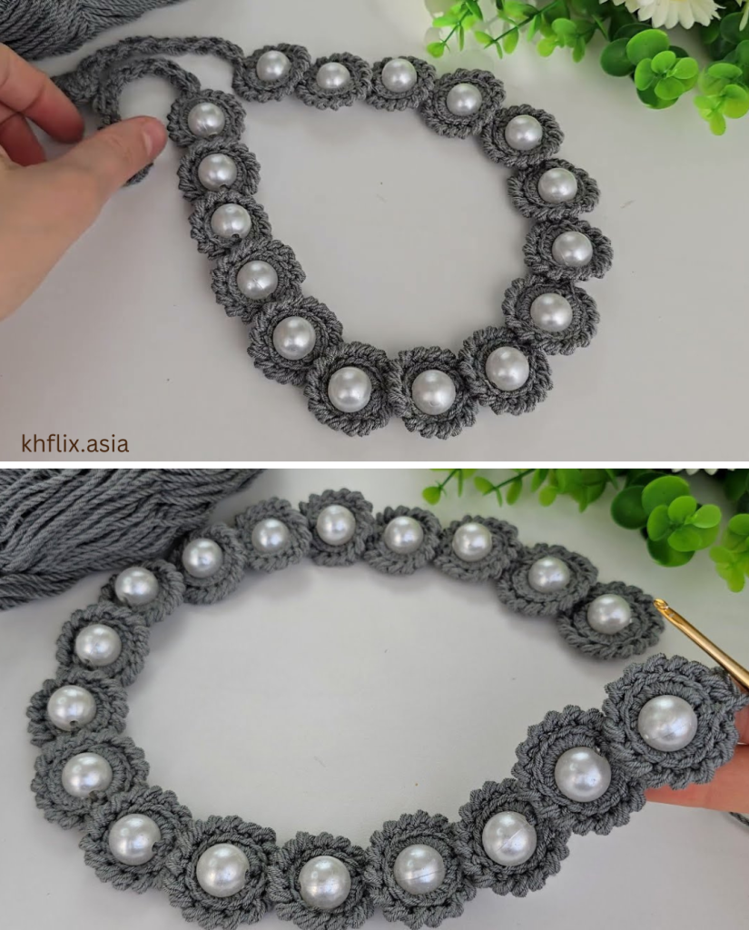 This stunning, versatile piece is far more than just a strap. Depending on its length and finish, it can be transformed into a delicate headband, a chic handle for a clutch bag, or even a statement necklace. The unique, repeated pearl motif gives the illusion of tiny flowers blooming right on your yarn. Let’s gather our shimmering supplies and start creating!
